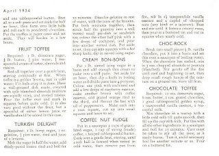 In April 1934, the recipe feature was candies, with the wonderful Mary Blake sharing some recipes for home-made candies. Now these sound pretty delicious!