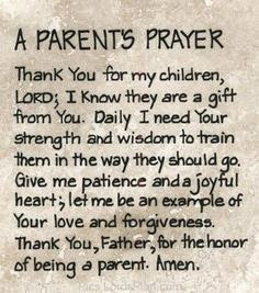 I especially like the last line in the above prayer, as it definitely is an honour to be a parent. Maybe it doesn't feel like it all the time, particularly when we wonder if all we do is even noticed. But my children are the greatest gift God has given me, no matter what.